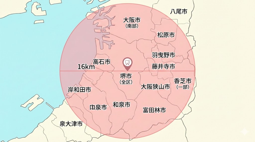 ひきしょう歯科クリニック(堺市東区)から半径16km圏内