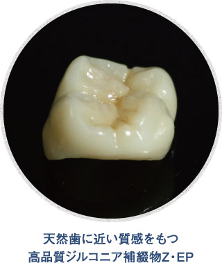 ⾦属のうらうちがない審美性の⾼いかぶせものです。体にとてもやさしい素材で⾦属アレルギーを起こすこともありません。しかもメタルボンドなどの⾦属よりも硬く丈夫です。⻑年使っていただいても着⾊汚れがつきにくく、変⾊のない材料です。