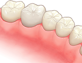 セラミック(陶器)でできた白色の詰めものです。見た目がよく、ほとんど変色も起こらずプラークもつきにくい素材です。また、金属を使用しないので金属アレルギーなどが起こることもありません。