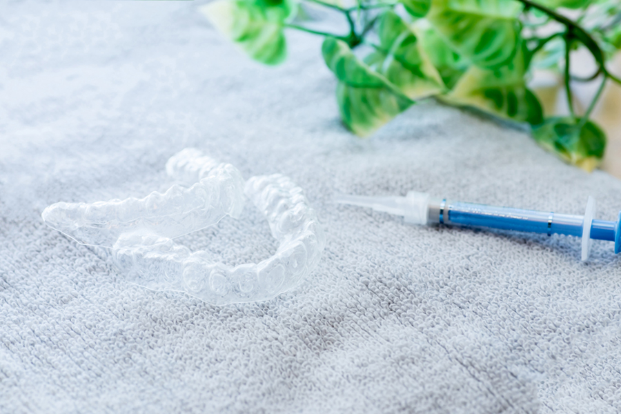 ホームホワイトニングとは、⻭科医指導の基に、⾃宅でジェルの⼊ったトレーを装着することで⻭を⽩くすることです。