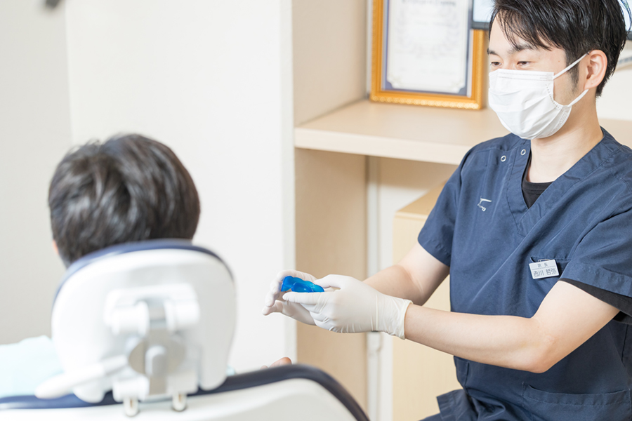 ひきしょう⻭科クリニックでは、患者様の症状をお聞きして、患者様にあったナイトガードを丁寧にお作り致します。