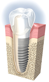 インプラントというのは人工歯根のことで、あごの骨の中にインプラントを埋め込んで、その上に人工の歯冠をかぶせるものです。